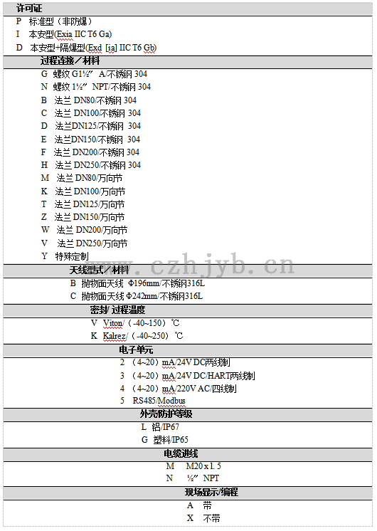 過程溫度(天線部分的溫度)                        (-40~250)℃